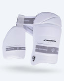 The SG Combo Ace Protector Cricket Batting Thigh Pad offers the ultimate protection with a unique combination of a thigh pad and inner thigh pad. Constructed from premium polyester and micro-weight UHDF (Ultra High-Density Foam) with polycarbonate reinforcement, it ensures maximum protection without compromising on comfort. The fully adjustable components and elasticated straps provide a customized fit, offering exceptional support. Trusted by top international players, this product features a soft absorbent polyester back and premium elastic waist and thigh straps, making it suitable for both right and left-handed batsmen.